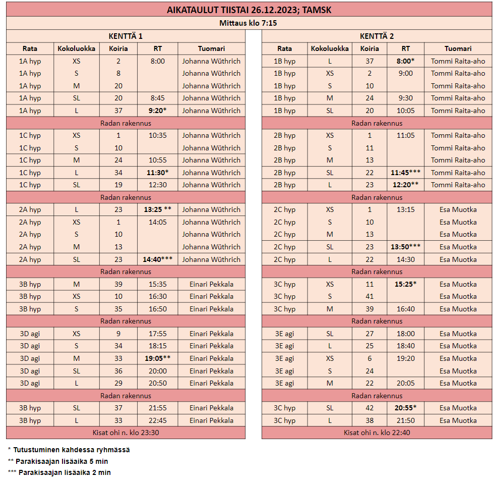 Kisoissa mitataan vain ennakkoon ilmoitettuja koiria. Ilmoittautuminen viimeistään 18.12.2023 mennessä.